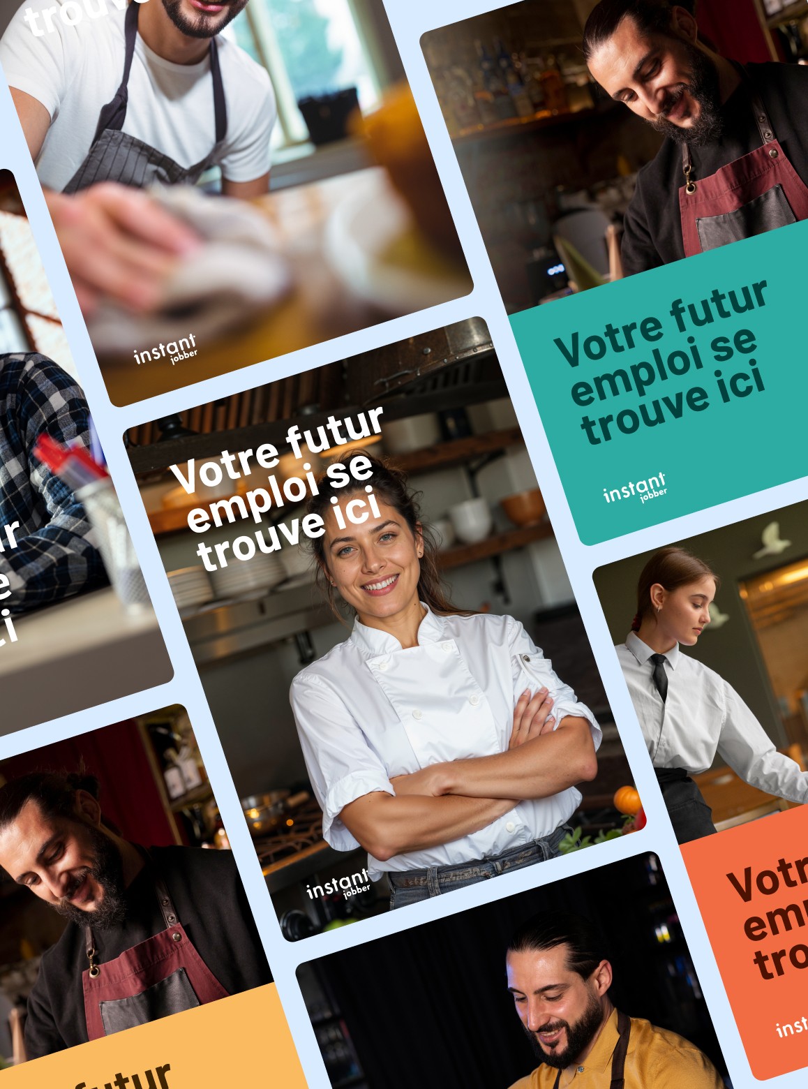 Une image moderne, dynamique et différenciante, alignée avec les valeurs de proximité, de réactivité et d’action d’Instant Jobber.