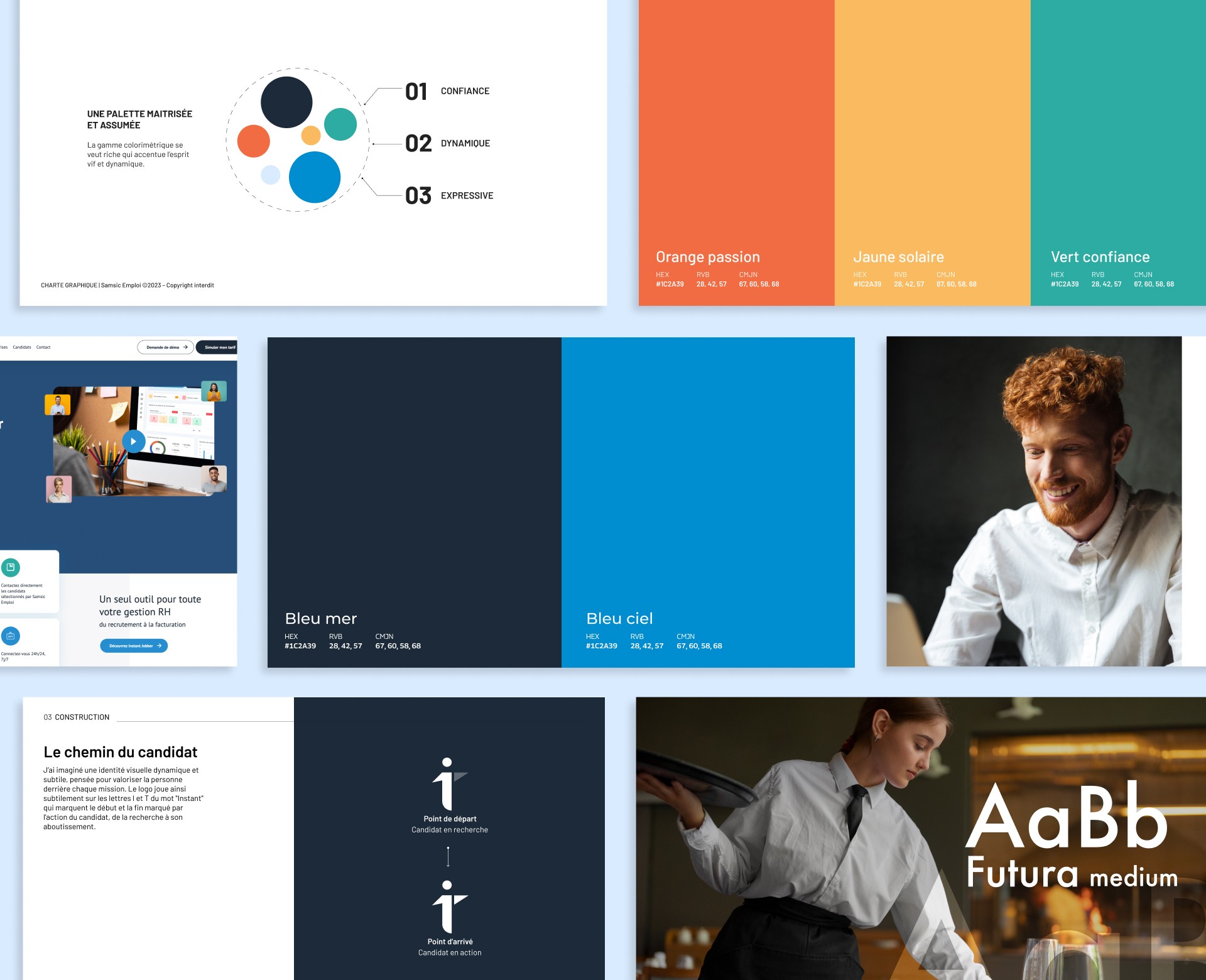 J’ai imaginé une identité visuelle dynamique et subtile, pensée pour valoriser la personne derrière chaque mission. Le logo joue ainsi subtilement sur les lettres I et T du mot "Instant" qui marquent le début et la fin marqué par l'action du candidat, de la recherche à son aboutissement.